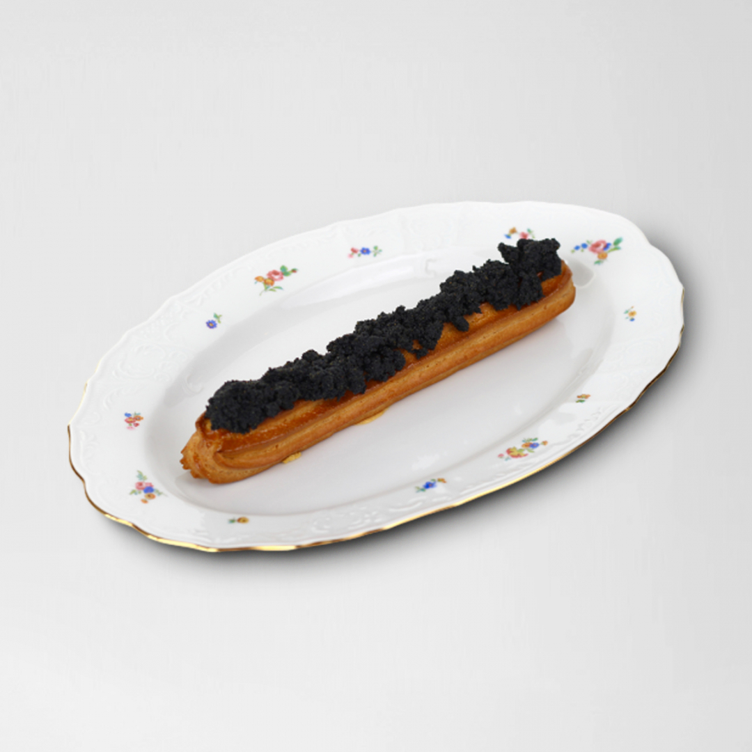 Эклер (сливочное масло, вода, молоко, соль, сахар, куриное яйцо, мука), крем (молоко сгушёное вареное, сыр творожный, сливки 33%,), мак, сахар.