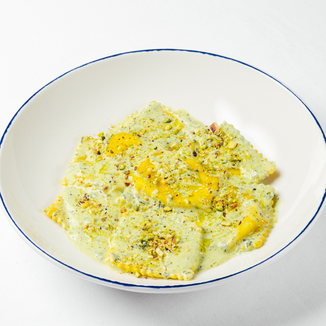 Равиоли с рикоттой в сливочном песто с фисташкой