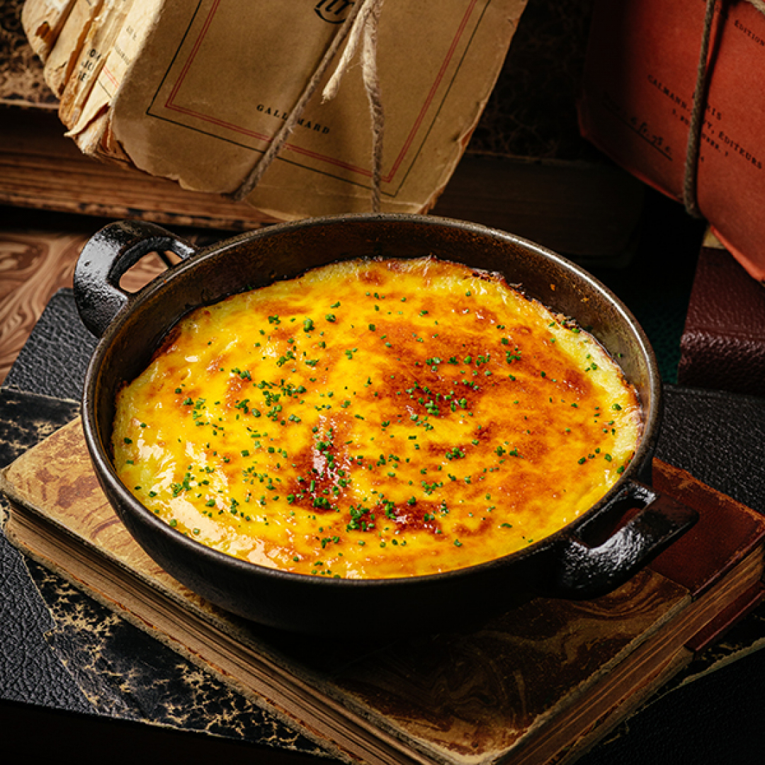 Слоёный пирог с брискетом и картофельным пюре
