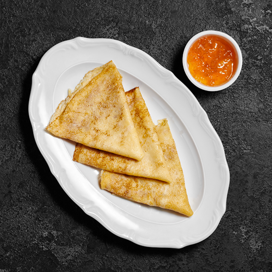 Блины с сгущенкой, сметаной, шоколадной пастой, абрикосовым джемом