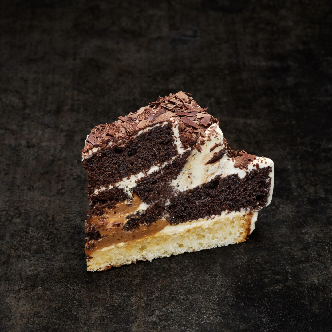 Сочная бисквитная горка с мягкой карамелью, пропитанная сливочно-сырном кремом и мягким шоколадом