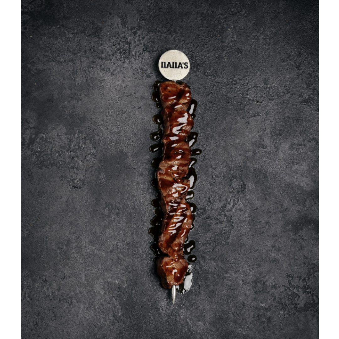 Говядина, картофельное пюре, соус дорблю, мясной соус, кедровые орешки, зелень