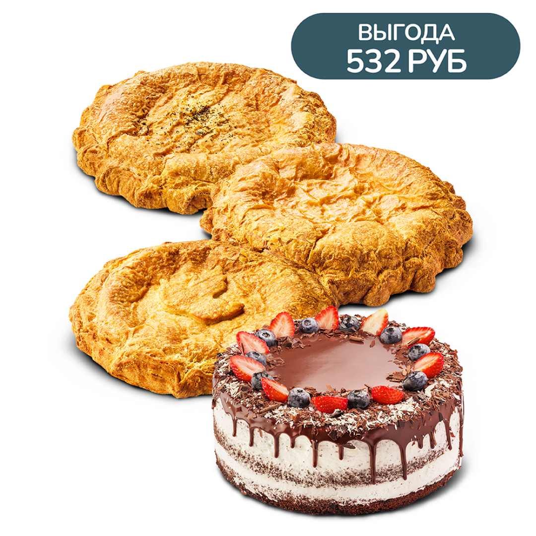 Торт Черный лес, Пирог рыбный на слоеном тесте, Курник со шпинатом на слоеном тесте, Пирог картофельно-мясной с грибами на слоеном тесте.