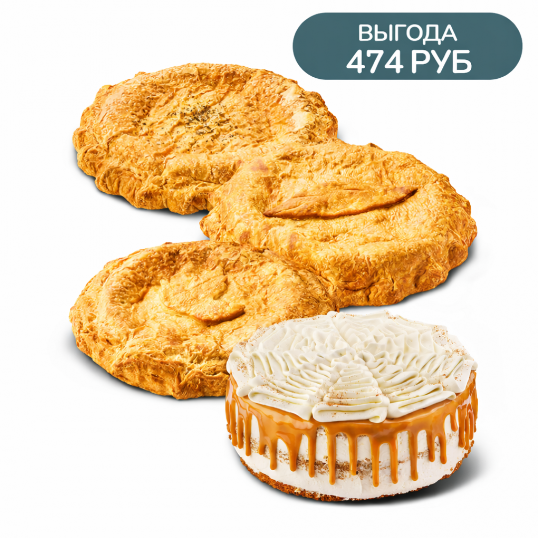 Торт Сицилийский (10 кусочков), Курник со шпинатом на слоеном тесте (4 кусочка), Пирог картофельно-мясной с грибами на слоеном тесте (4 кусочка), Капустник на слоеном тесте (4 кусочка).