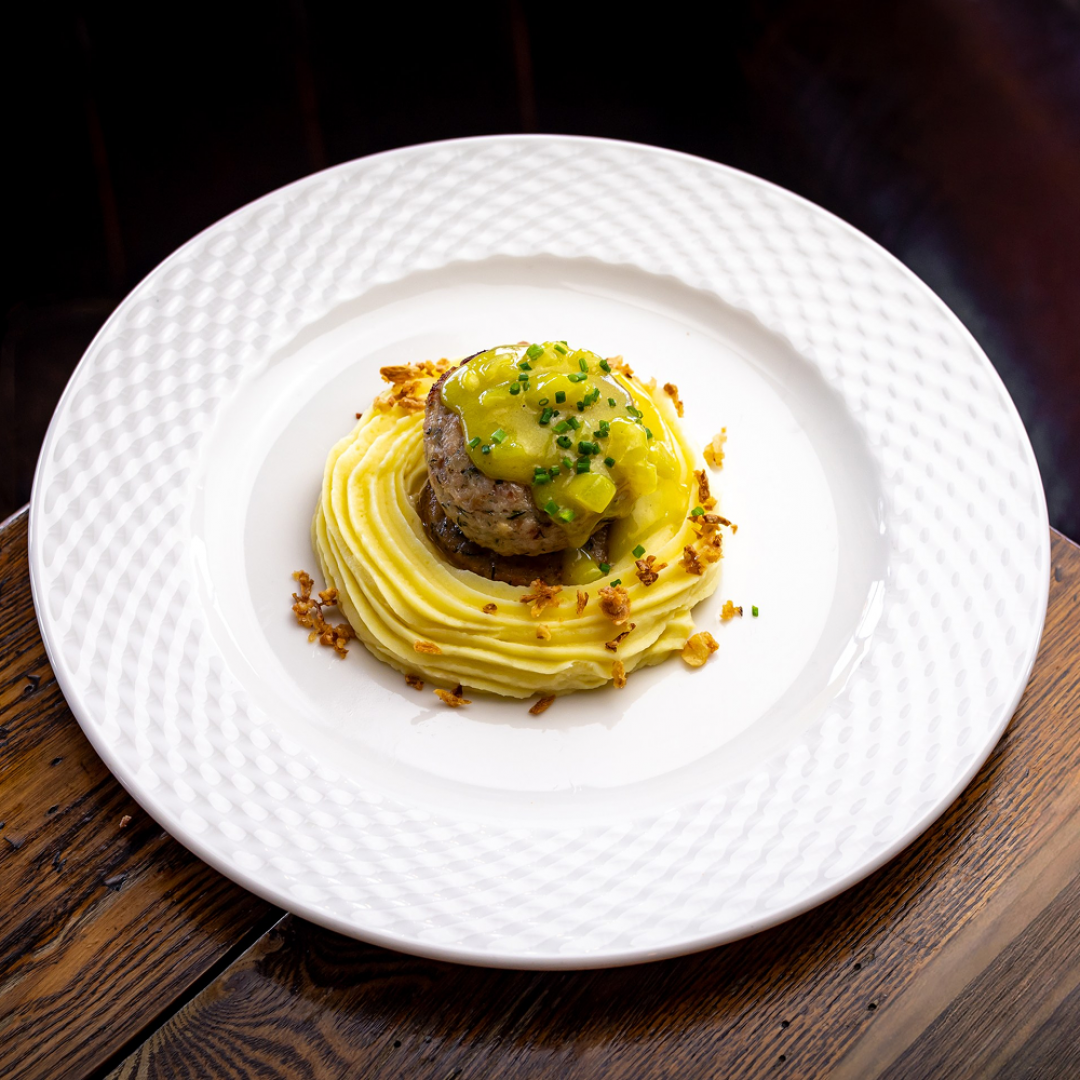 Котлеты из кролика с картофельным пюре и сливочным соусом