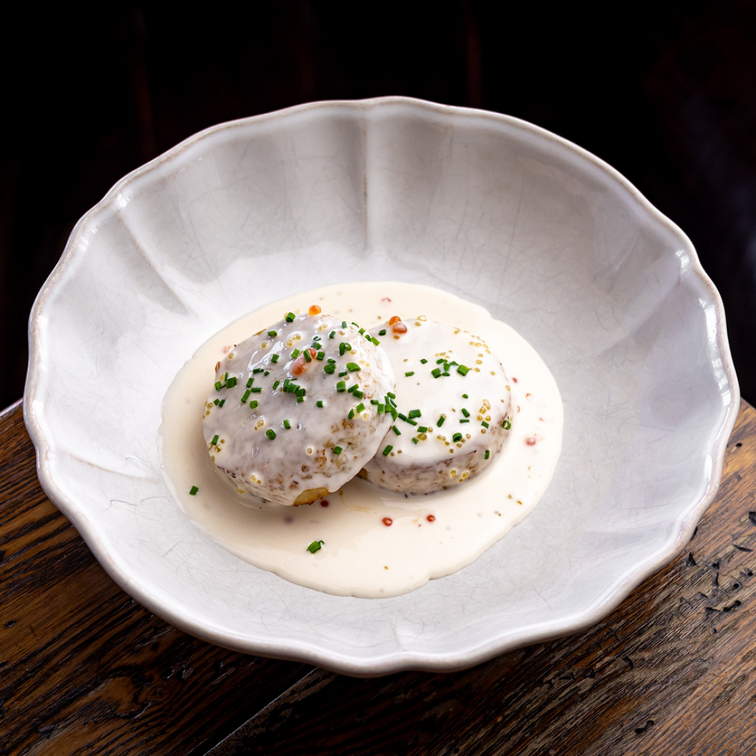 Котлеты из кролика с картофельным пюре и сливочным соусом