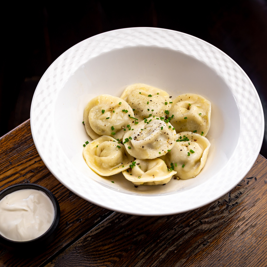 Пельмени из нельмы и муксуна с заправкой из щучьей икры