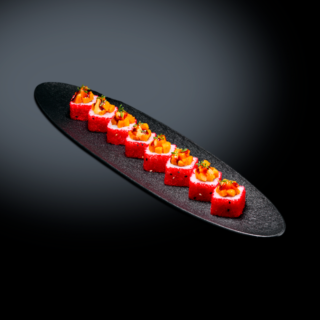 Болгарский перец, цукини, баклажан, авокадо, шиитаки, кедровый орех, гуакамоле, соус сальса, постный майонез.